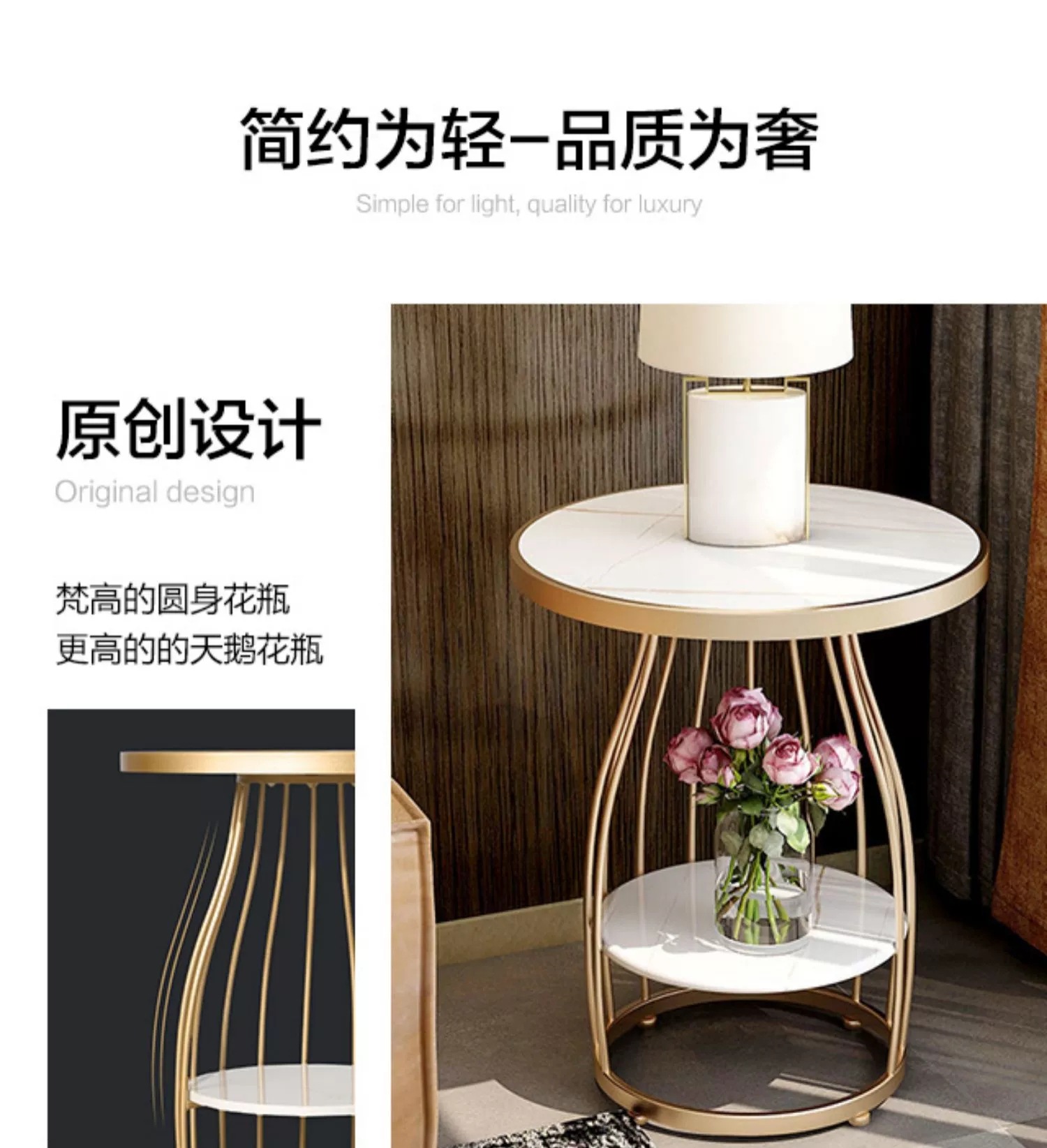 轻奢边几大理石客厅沙发边桌角几阳台小圆桌床边柜岩板桌子小茶几