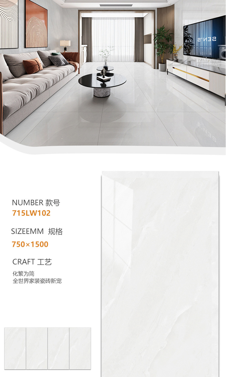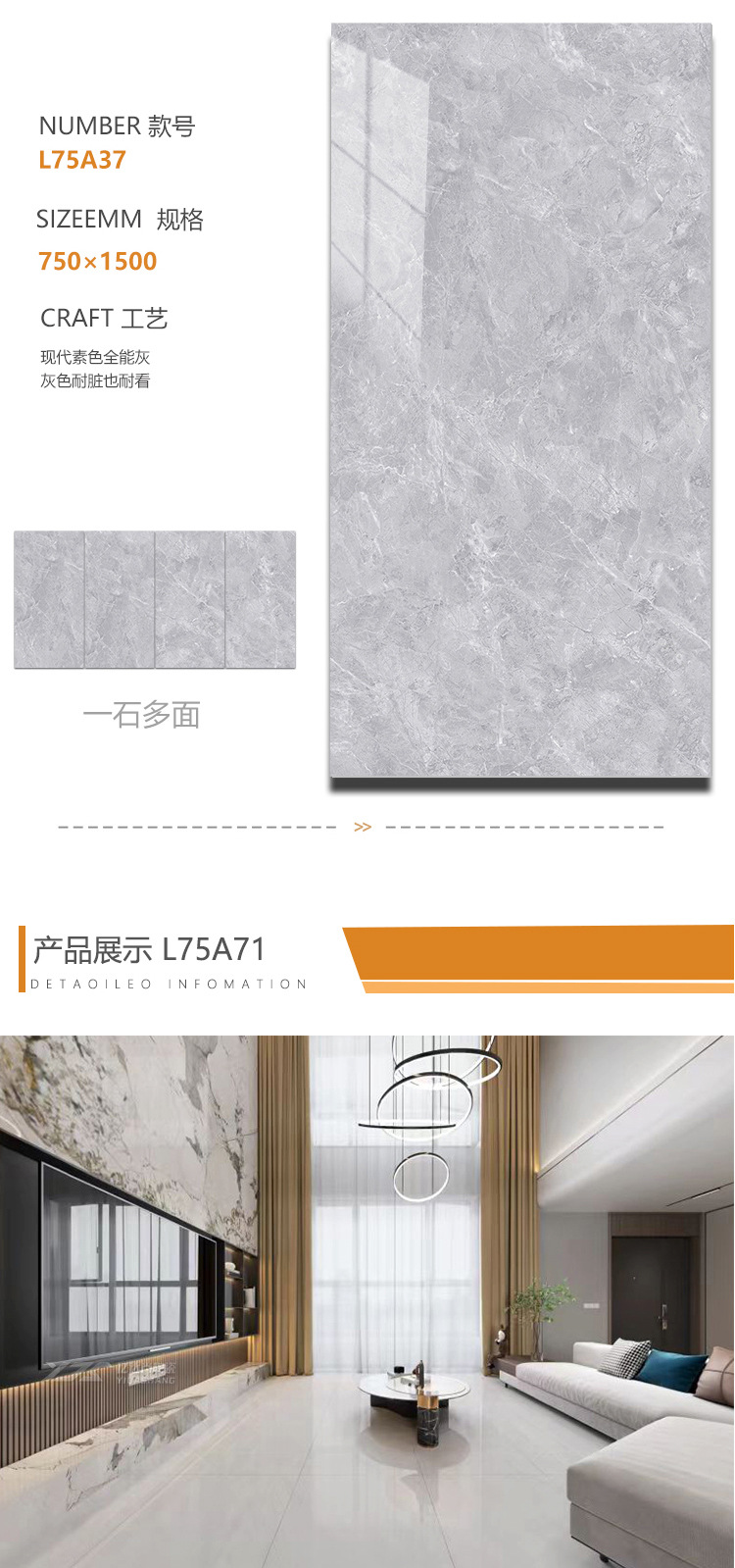 厂家7501500通体大理石瓷砖素色防滑地板砖客厅餐厅大板墙砖