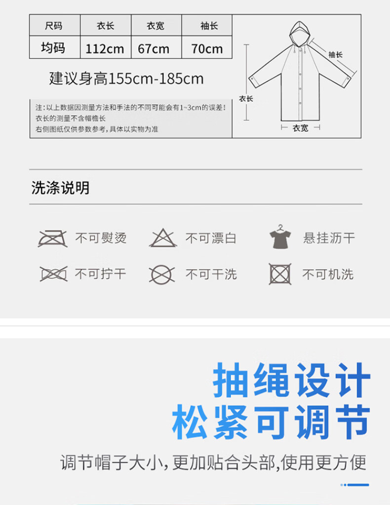 成人均码雨衣长款男女通用均码EVA材质电动车骑行戴帽雨