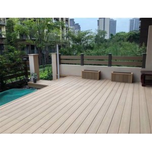 木塑户外地板主要材料为PE和木粉或者竹粉,经过加入助剂,高速混合后,进行造粒,再使用挤出机将粒料挤出成型材,此类地板可用于园林景观,别墅等户外平台。