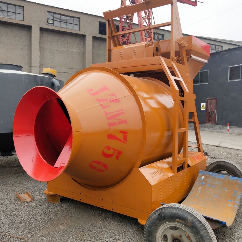 JZM系列滚筒混凝土搅拌机,低噪音。JZM750型摩擦式搅拌机属正转搅拌,反转出料式混凝土搅拌机。搅拌筒出料容量为0.75立方米,每个搅拌循环100秒钟,可搅拌塑性和半干硬性混凝土。本机采用橡胶托轮摩擦传动,具有噪音小、运转平稳,操作、移动方便,搅拌质量好,生产效率高等优点,与配料装置相配套,可组成中小型搅拌站,适用于一般建筑工地,道路、桥梁水电等工程,特别适用于城市居民居住区施工。
