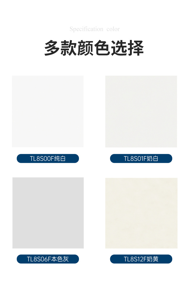 色系TL8S00F纯白(亮光),TL8S01F奶白(亮光),TL8S06F本色灰(亮光),TL8S12F奶黄(亮光)