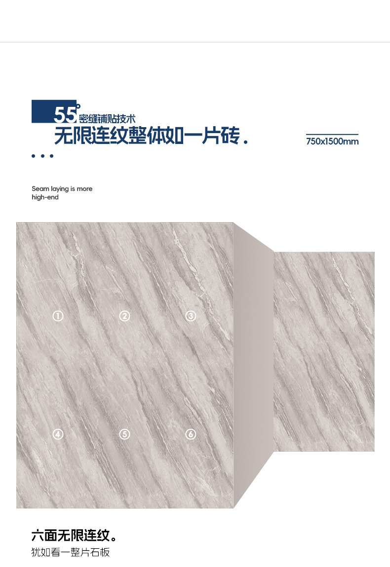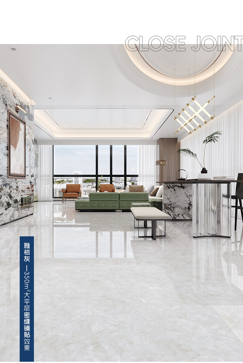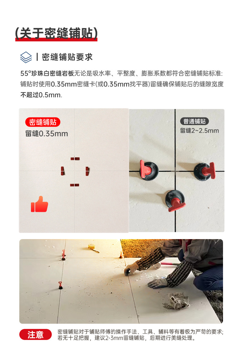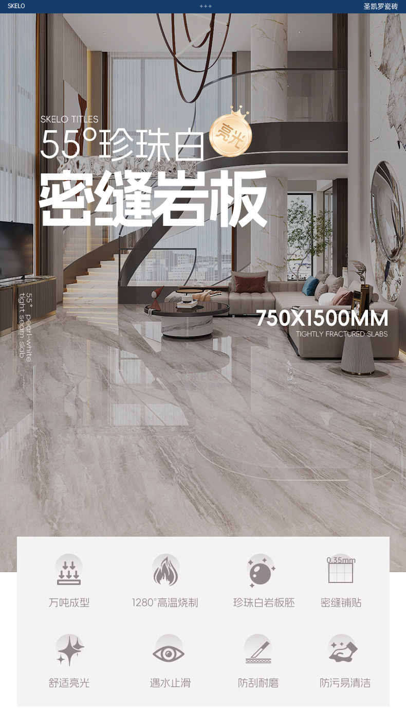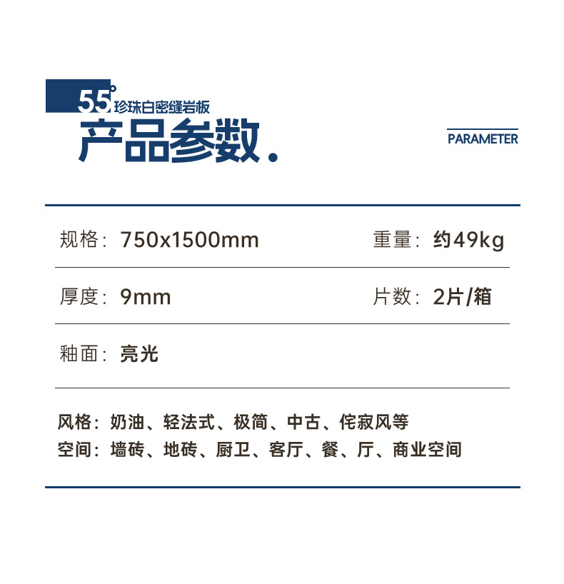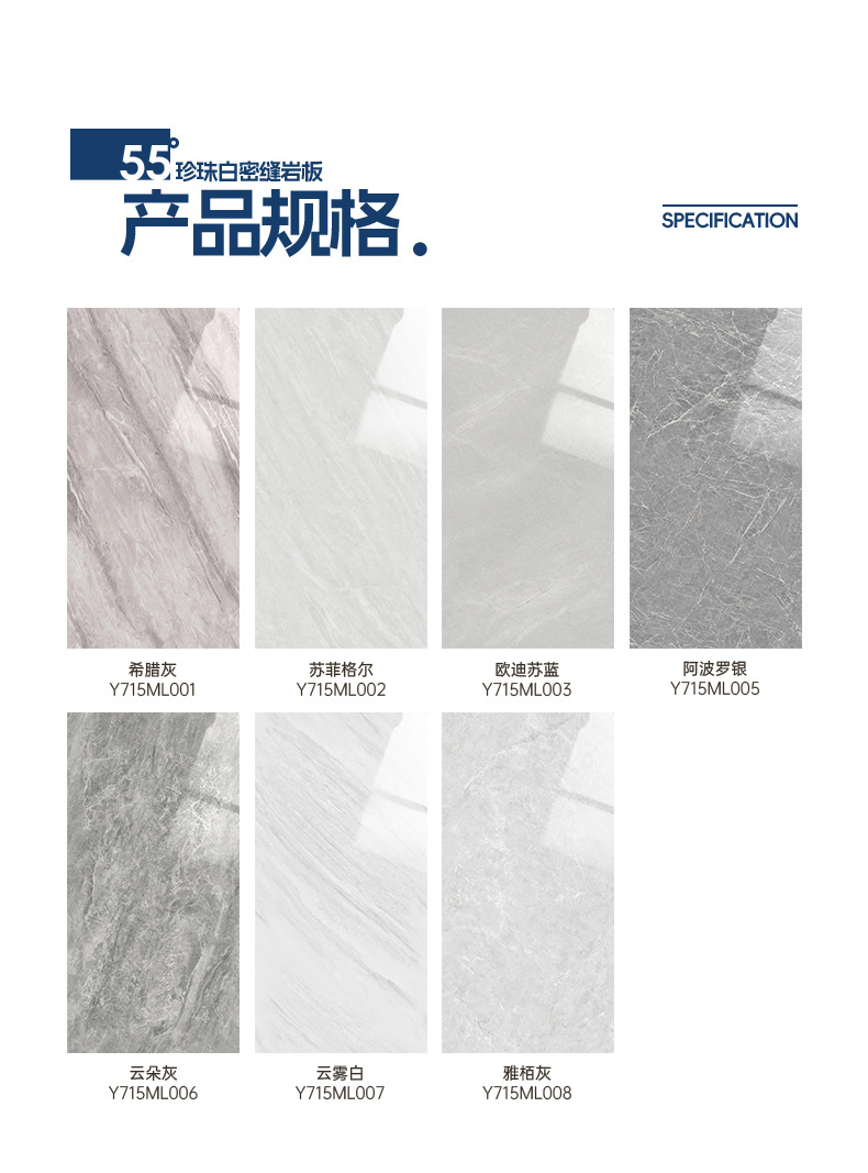 工艺55°珍珠白密缝岩板、亮光、密缝