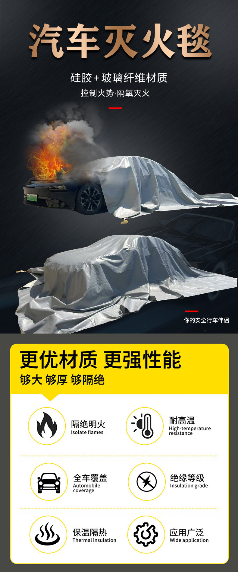 消防认证新能源汽车阻燃灭火毯电动车灭火毯硅胶防火车衣玻璃纤维