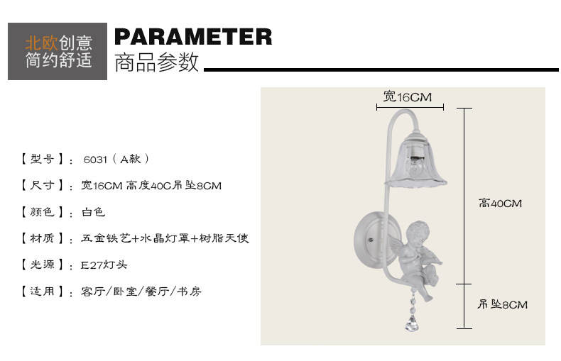 北欧现代简约温馨天使墙壁灯床头灯卧室过道阳台楼梯走廊创意壁灯