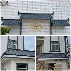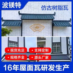 合成树脂瓦具有颜色持久、质轻、自防水、坚韧、保温隔热、隔音、耐腐蚀、抗风防震、抗冰雹、抗污、绿色、防火、绝缘、安装方便等优点,而且造型美观立体感强,颜色中国元素,使得它被广泛应用于各类建筑屋面装饰,尤其目前国内大力推广的“平改坡”工程。