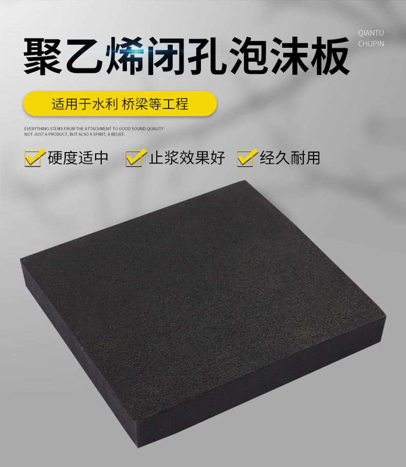 聚乙烯闭孔泡沫板厂家黑色止浆条pe高密度垫板密封圆形板条伸缩缝