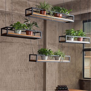 美式乡村室内铁艺实木花架 酒吧咖啡厅悬挂吊顶吊架多层装饰花架