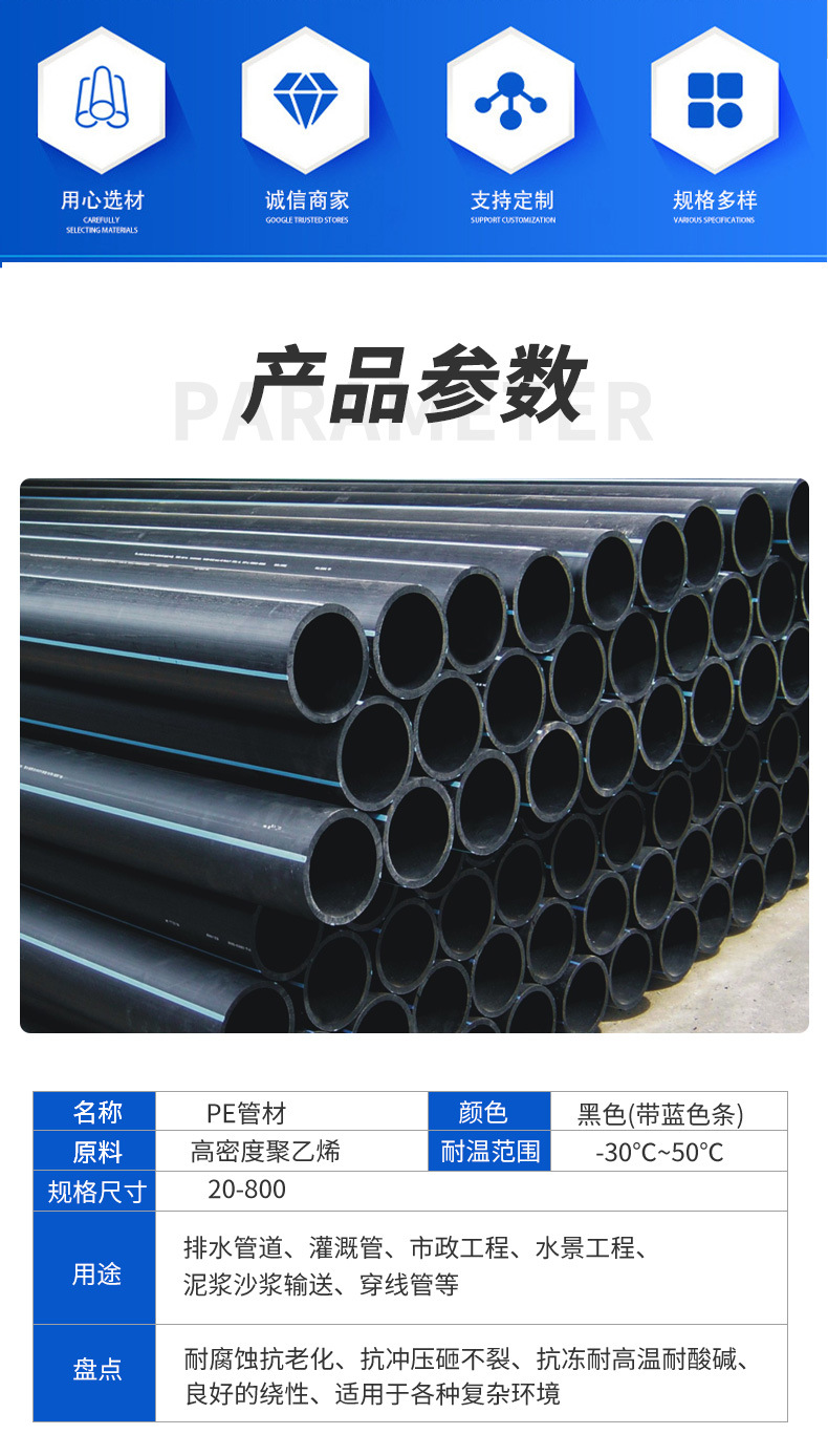 腾塑pe给水管hdpe给水管厂家pe饮用水管绿化供水 灌溉管pe管