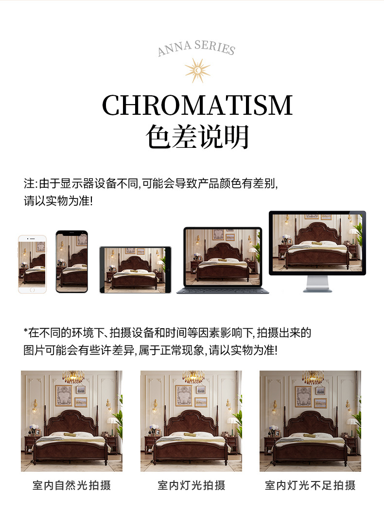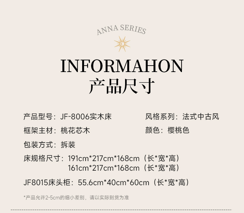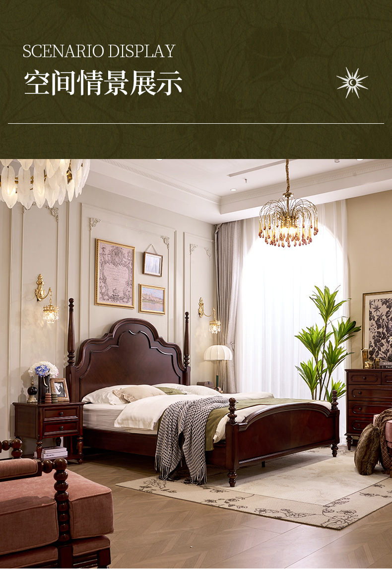 (FAS级桃花芯)高端复古实木床法式安娜床中古风大床1.8 双人实木床