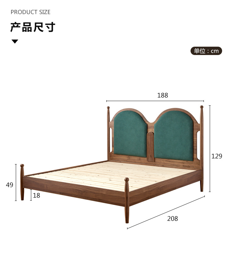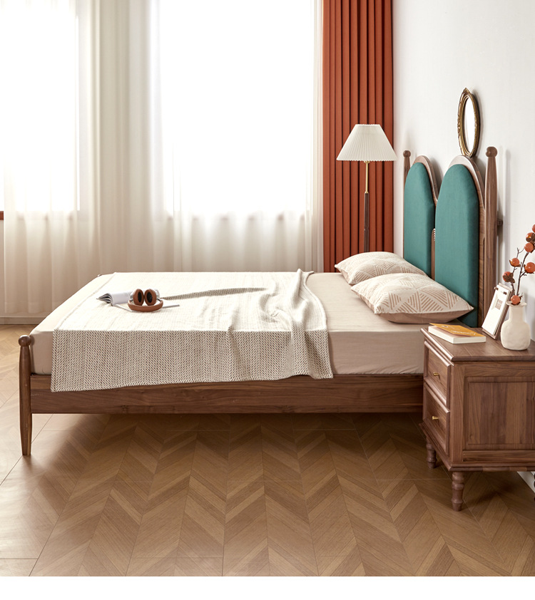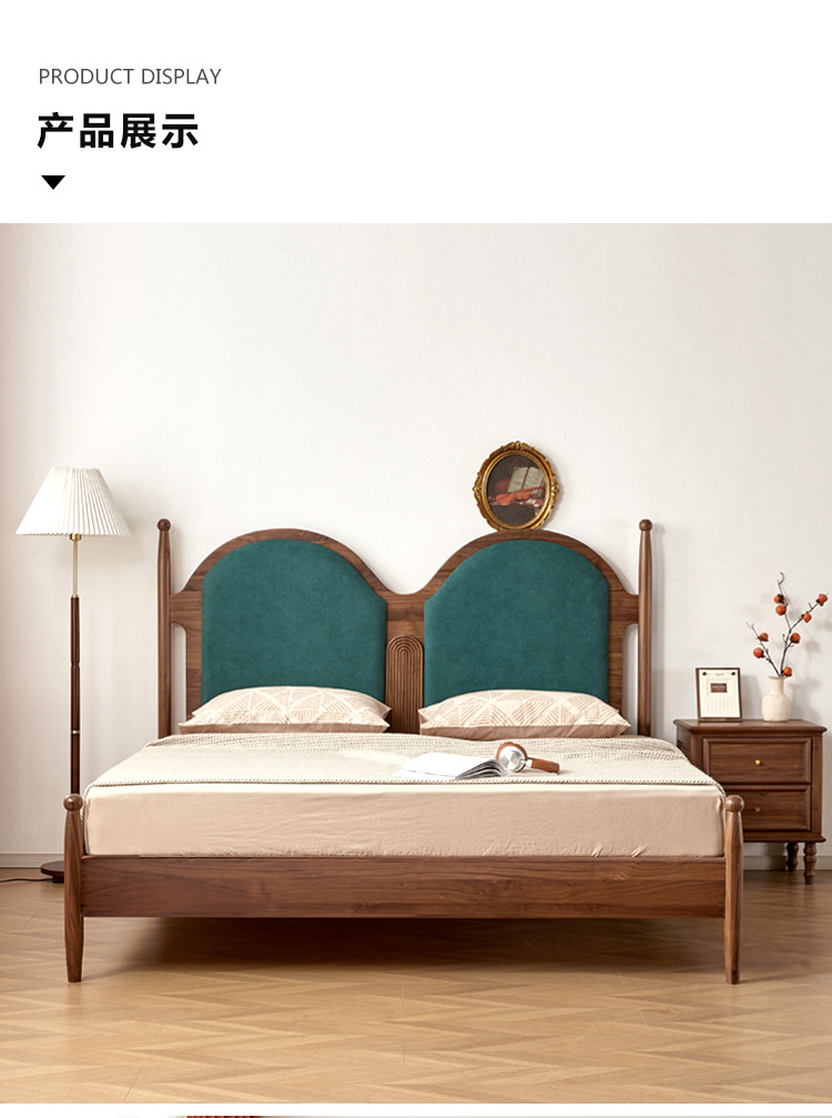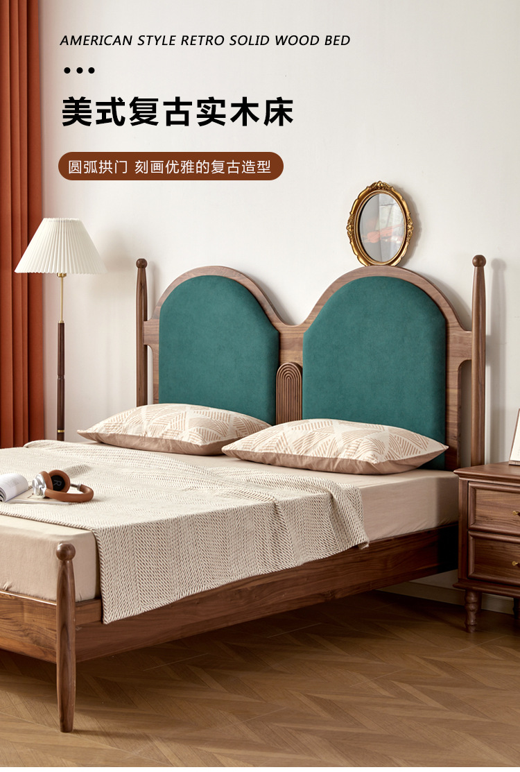 美式复古北美黑胡桃木实木爱丁堡简约全实木复古轻奢主卧软包大床