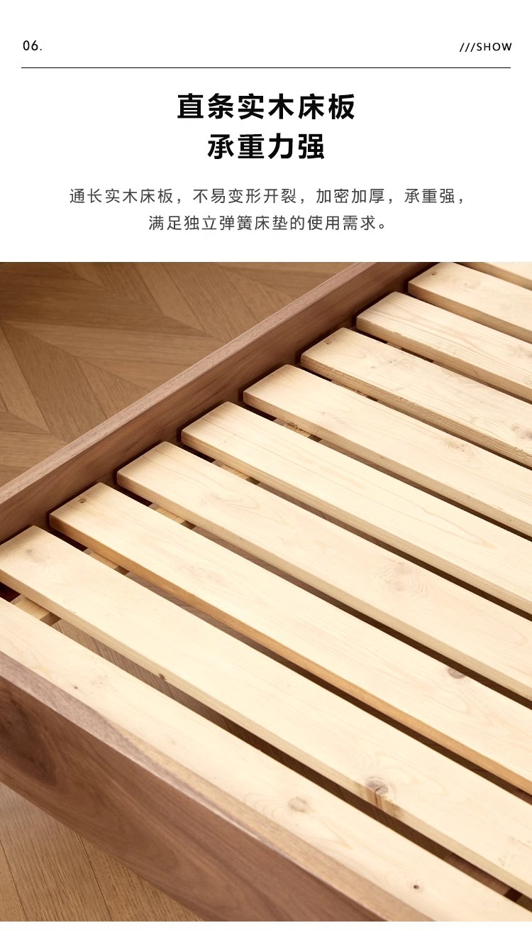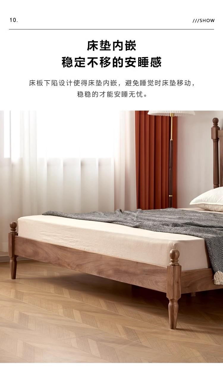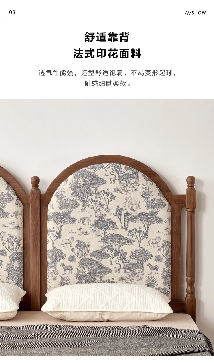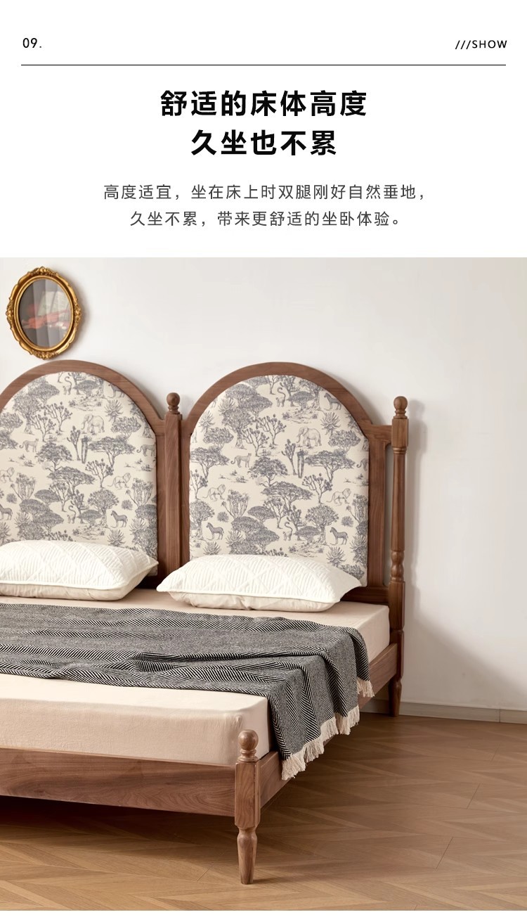 北美黑胡桃木实木仲夏夜床现代简约卧室法式布艺软包复古双人床