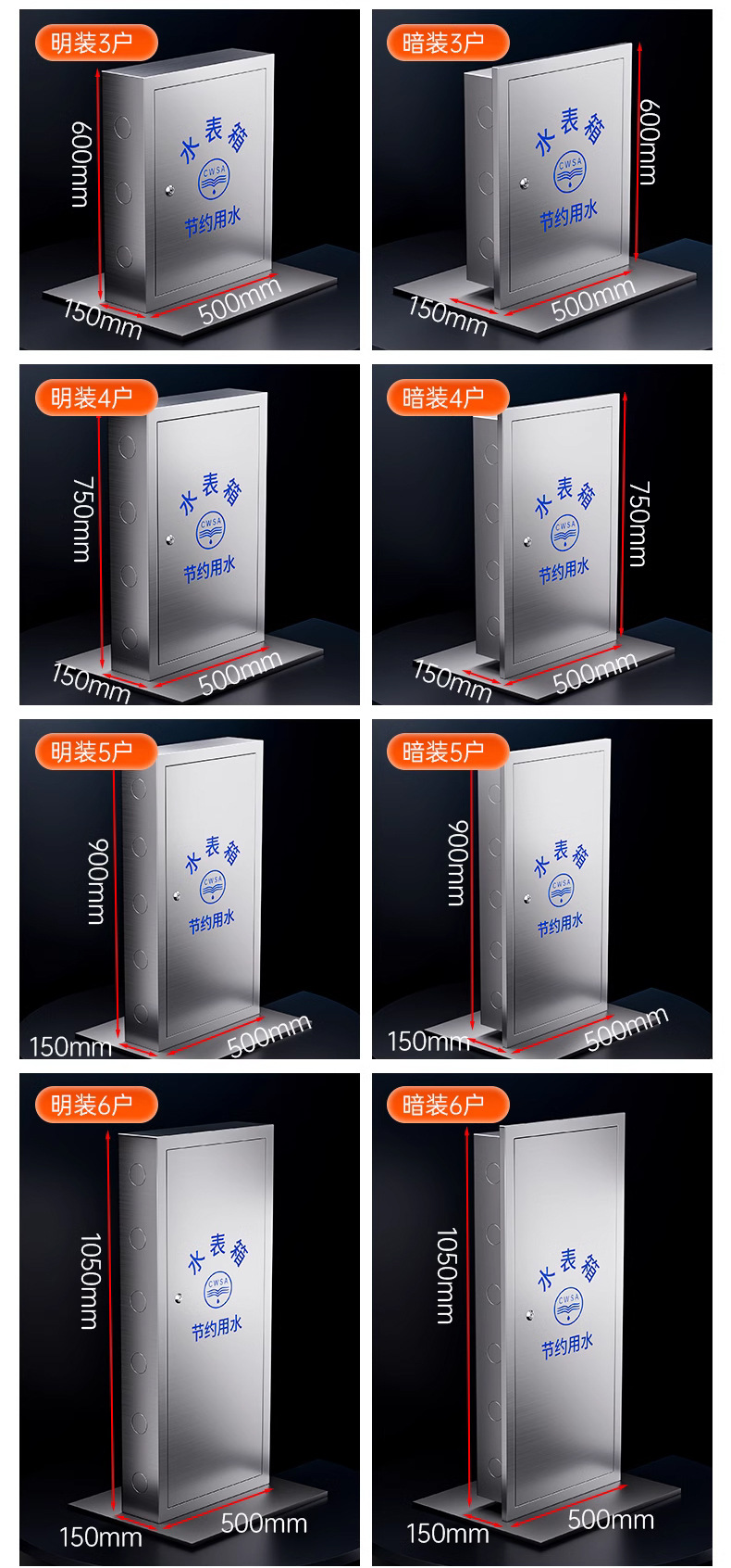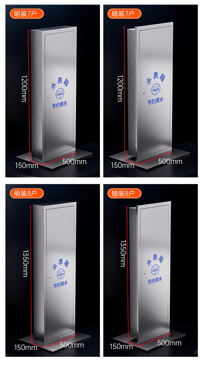 型号单户明装【201材质】,单户暗装【201材质】,单户明装【304材质】,单户暗装【304材质】,两户明装【201材质】,两户暗装【201材质】,两户明装【304材质】,两户暗装【304材质】,三户明装【201材质】,三户暗装【201材质】,三户明装【304材质】,三户暗装【304材质】,四户明装【201材质】,四户暗装【201材质】,四户明装【304材质】,四户暗装【304材质】,五户明装【201材质】,五户暗装【304材质】,六户明装【201材质】,六户明装【304材质】,七户明装【201材质】,七户明装【304材质】,八户明装【201材质】,八户明装【304材质】,1户暗装水表箱光边框【201材质】,1户暗装水表箱光边框【304材质】