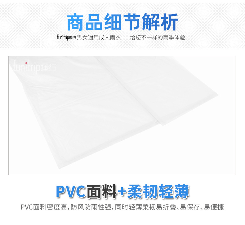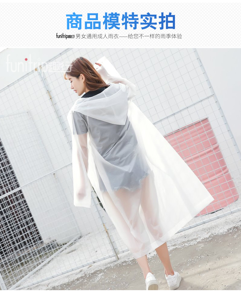 趣行成人雨衣男女通用均码户外旅游登山漂流非一次性戴帽雨披白色